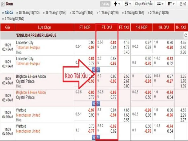 • Tổng số bàn thắng được ghi trong trận đấu lớn hơn 2 trái. Người chơi lựa chọn đặt Tài sẽ ăn đủ tiền