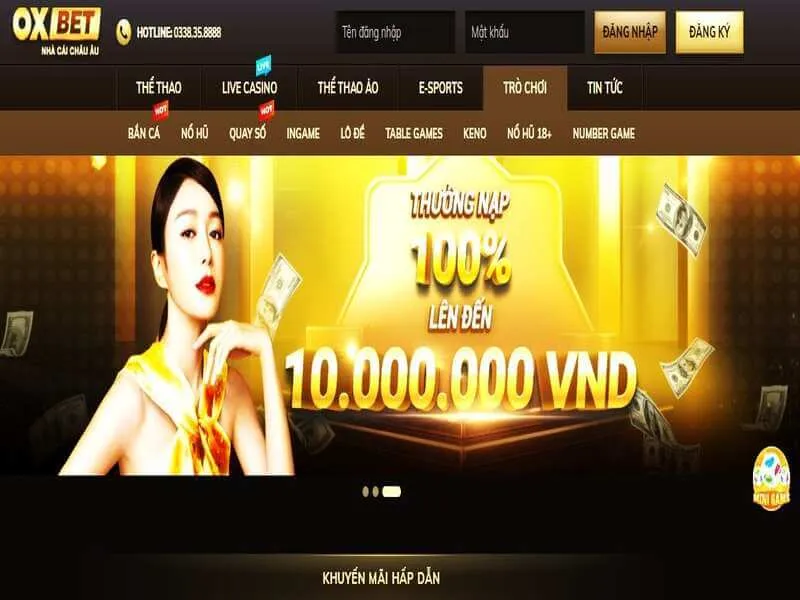 Nhà cái Oxbet sở hữu nhiều hình thức cá cược phong phú đáp ứng được mọi nhu cầu đặt cược của bạn. Dù bạn muốn chơi cá độ bóng đá, thể thao ảo hay casino online đều có sẵn tại đây.